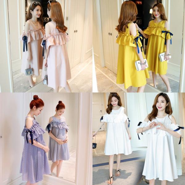 マタニティ ワンピース 妊婦服 ペプラム 半袖 夏ワンピ Free 3色 ワンピース Buyma